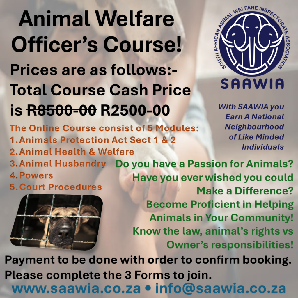 Here’s some information about SAAWIA (South African Animal Welfare Inspectorate Association) and their training programs: